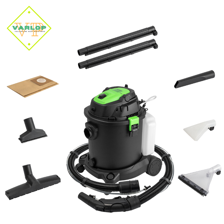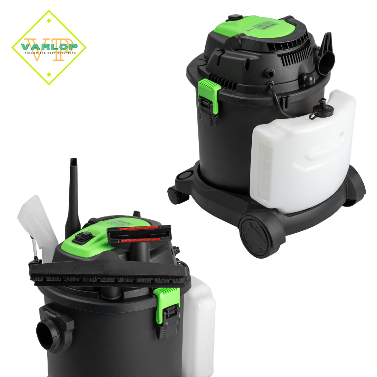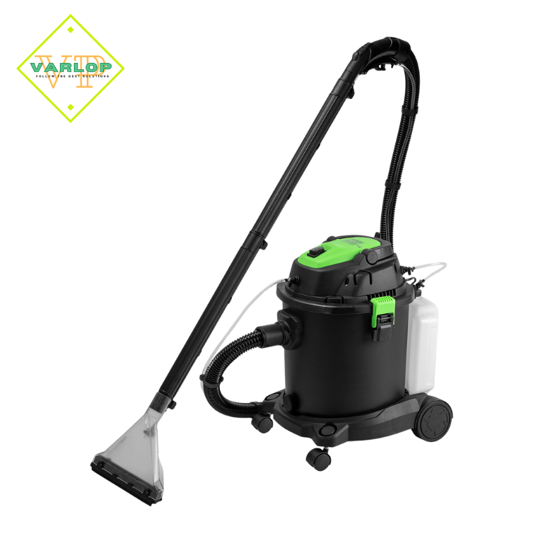 Ideal para tapetes, colchões, estofos e bancos de automóveis. Permite a aplicação de água com detergente e aspiração a seco ou húmida. Equipado com depósito de detergente removível de 3,5 L, depósito de resíduos de 20 L e mangueira de aspiração de 175 cm. Concebido para desempenho profissional.