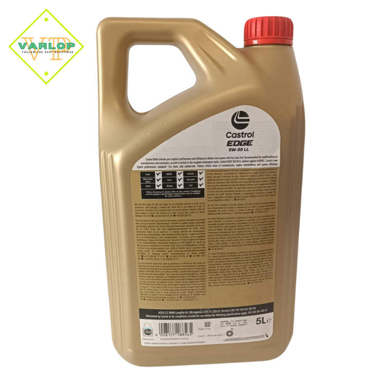 Castrol EDGE 5W-30 LL está aprovado para utilização em veículos que exijam um lubrificante SAE 5W-30 com as aprovações VW 504 00 / 507 00, Porsche C30 ou MB-Approval 229.31/229.51.