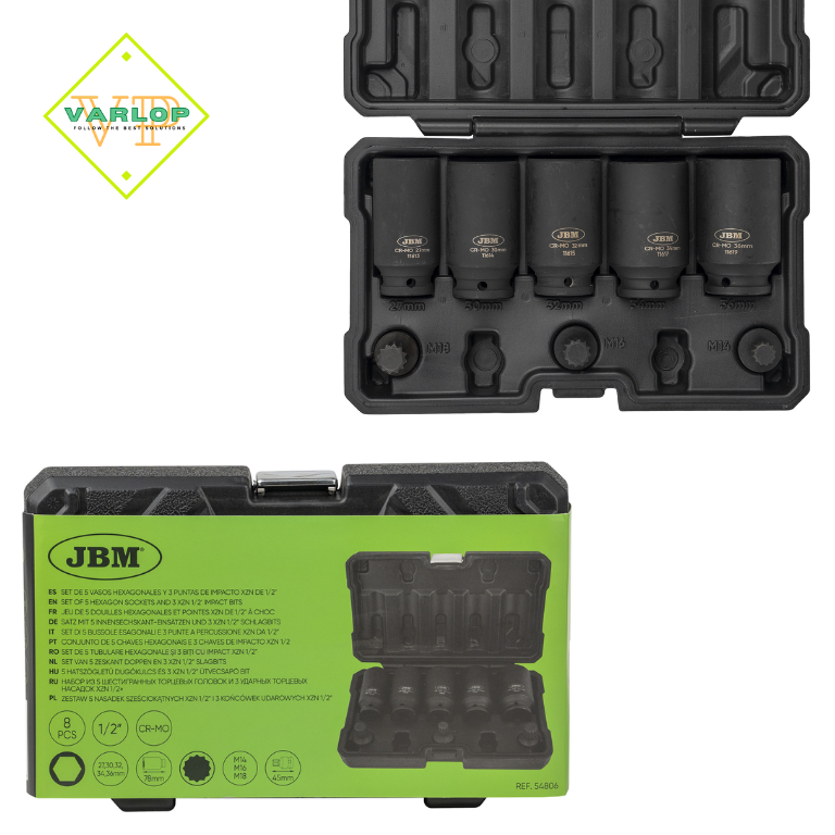 · x5 soquetes sextavados de 76 mm de comprimento: 27, 30, 32, 34, 36 mm