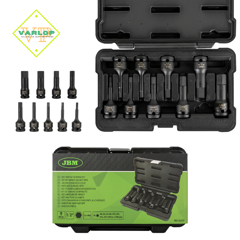 Especificações Técnicas: Peças 9 Medida do quadrado 1/2″ Perfil Hexagonal Material CR-MO Peso 1,25Kg Dimensões (CxLxA) 245x125x50mm Detalhes: Medidas: 5, 6, 7, 8, 10, 12, 14, 17, 19mm x (78mmL)