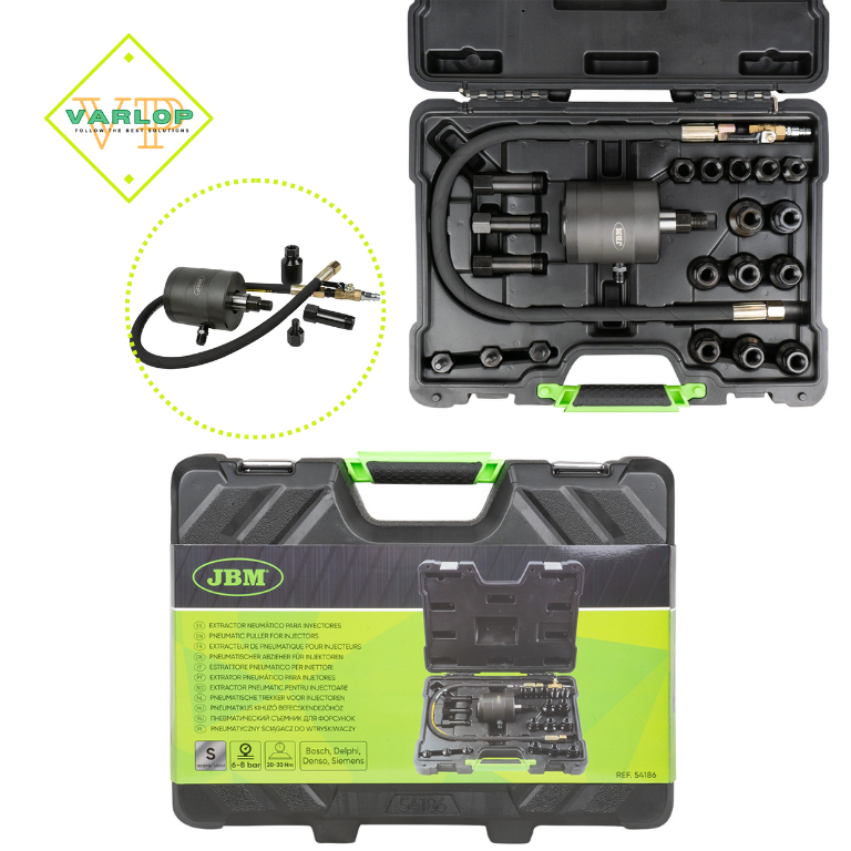 Este extrator utiliza força pneumática para facilitar a remoção rápida e segura de injetores diesel. Conta com vários adaptadores compatíveis com os modelos mais comuns do mercado, garantindo ampla compatibilidade.