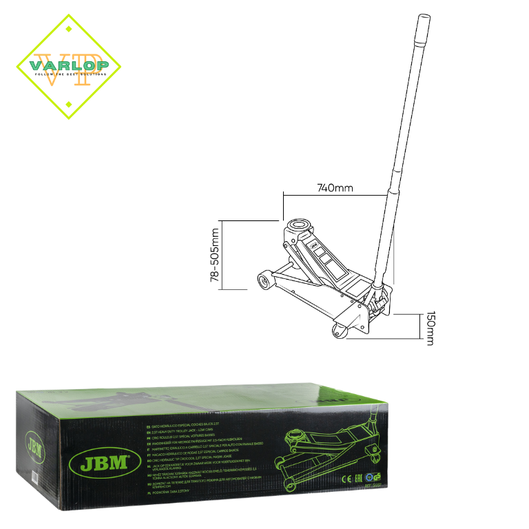 Este macaco hidráulico permite fácil acesso aos pontos de elevação de veículos baixos, garantindo um levantamento seguro e eficiente.