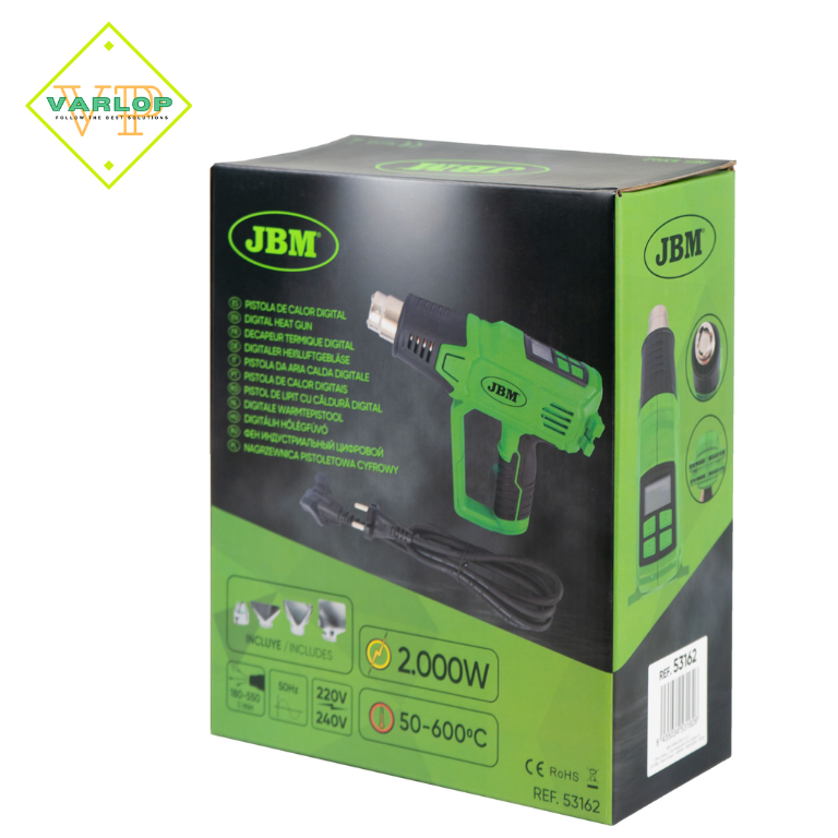 220V-240V 50Hz-60HZ 2000W Temperatura de saída: 100-600ºC Fluxo de ar: 280-480L/min