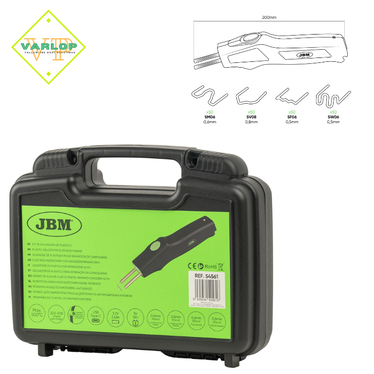 Este kit de soldador portátil é especialmente projetado para trabalhos de soldagem de plásticos no setor automotivo. Sua tecnologia potente e características práticas permitem reparos e uniões duráveis em peças plásticas de veículos, proporcionando um acabamento profissional.